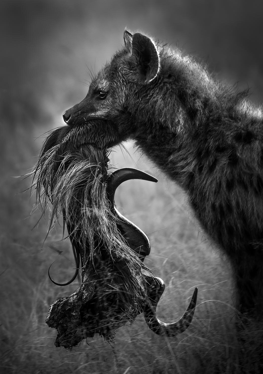 trophy-hyene-trophée-chasse-photo-noir-blanc-afrique