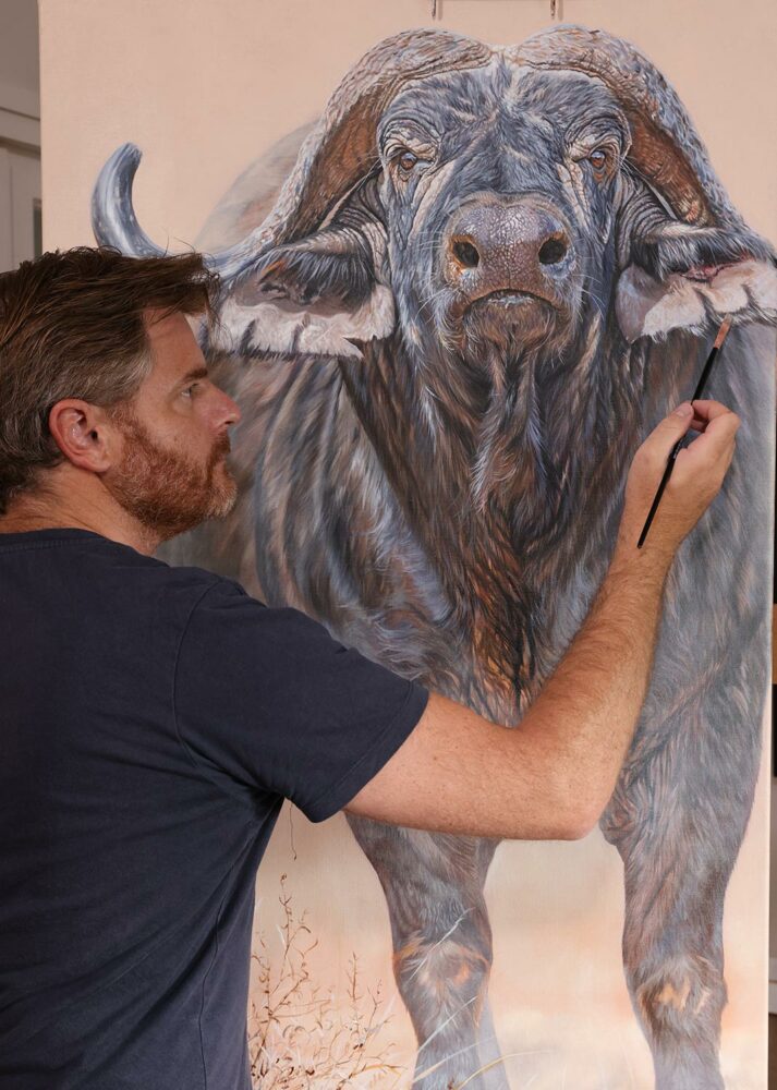 peintre-animaux-sauvages-afrique-artiste-animalier-buffle