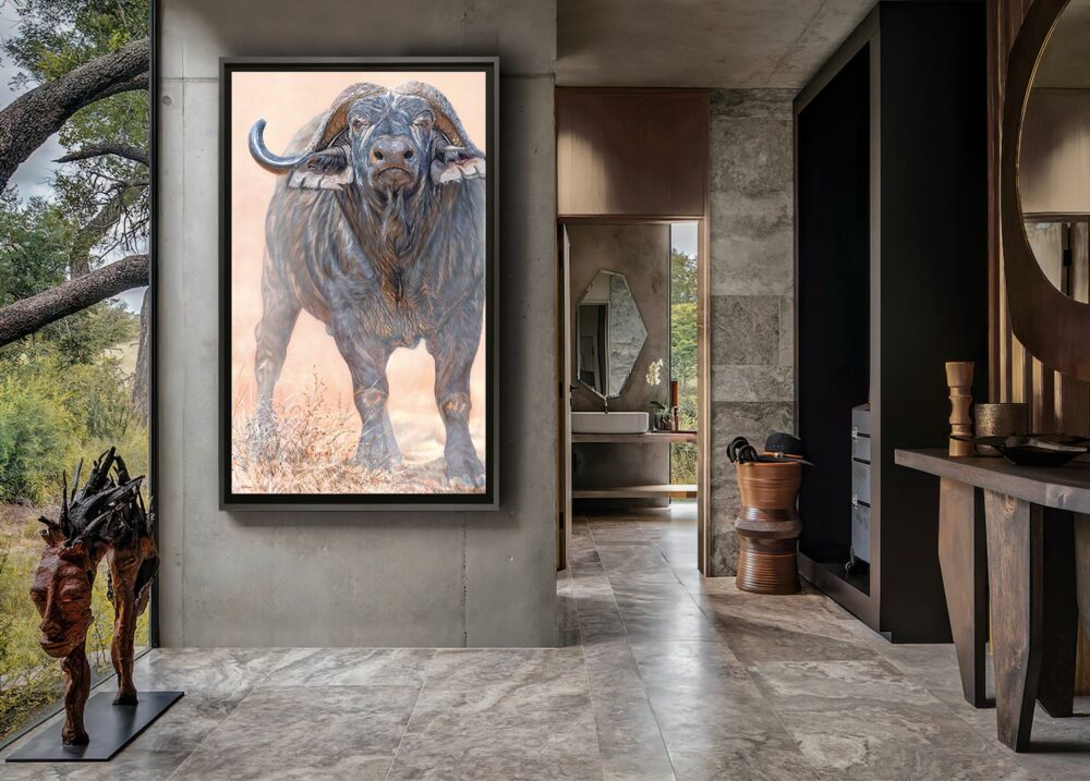 luxury-african-lodge-interior-design-decoration-cape-buffalo-painting