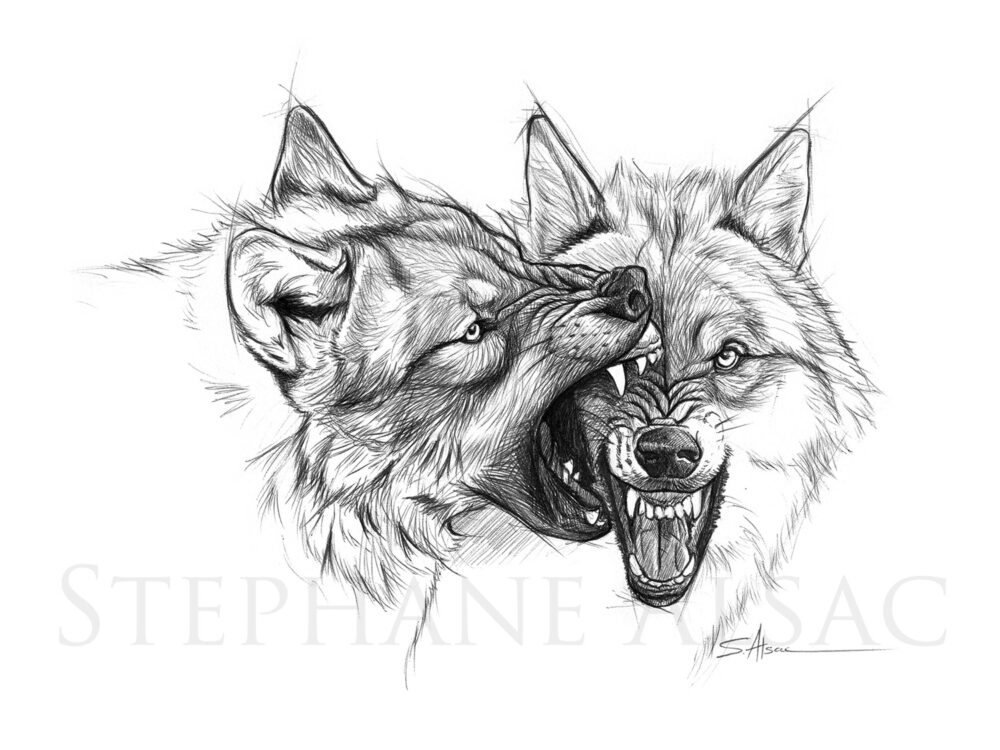 illustration-dessin-tableau-combat-loups-gravure-chasse