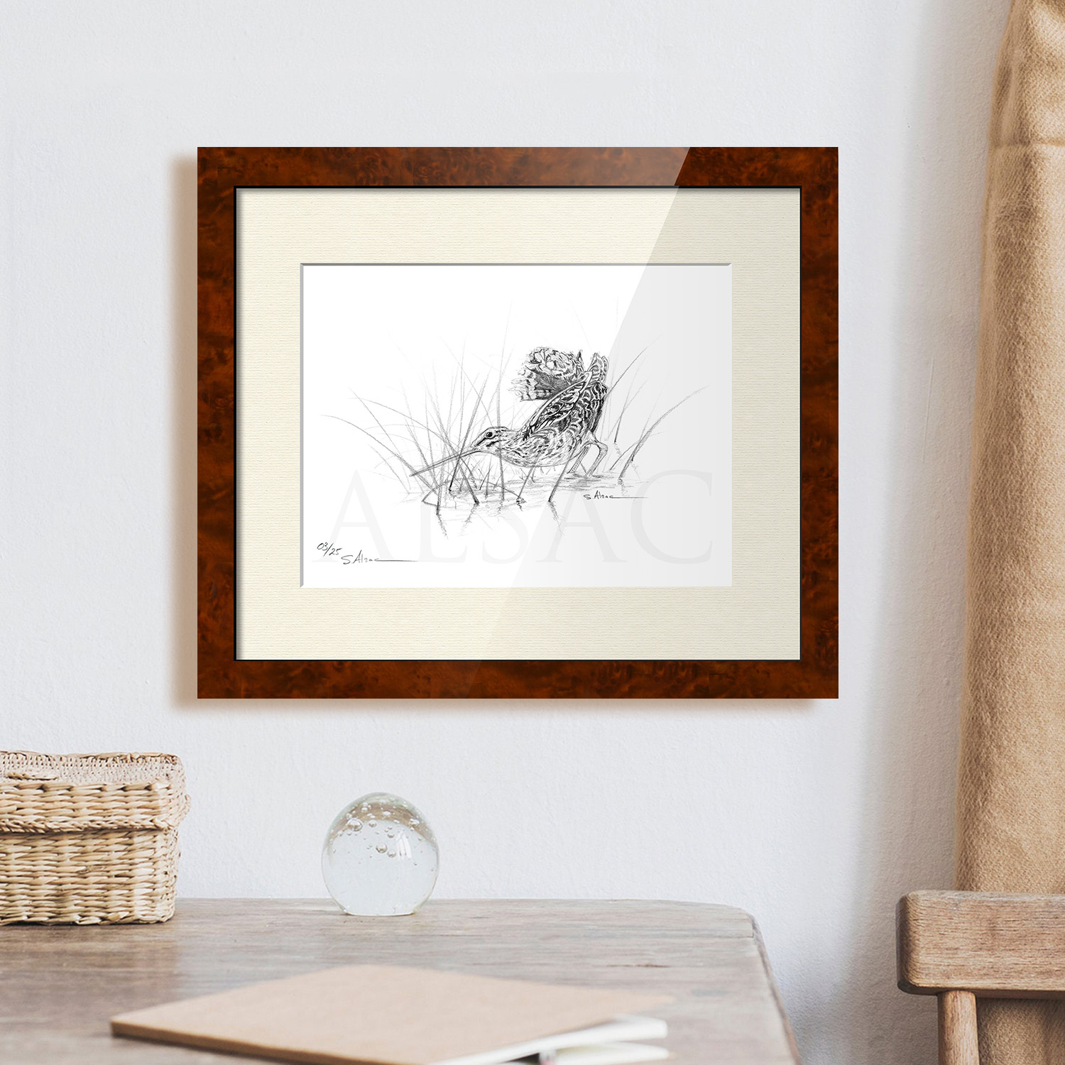 tableau-cadre-gravure-chasse-becassine-cadeau-chasseur