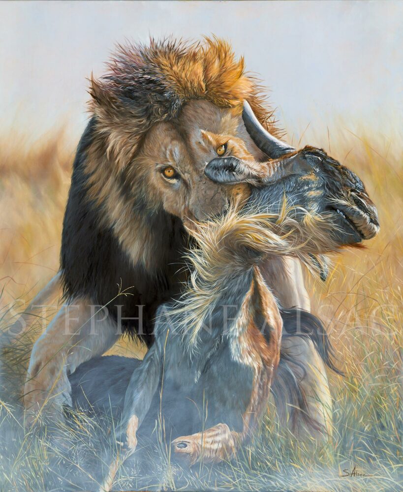 grand-tableau-peinture-lion-tuant-gnou-hyper-realiste-taille-reelle-artiste-animaux-afriqueStef2023-02-03T17:32:07+01:00