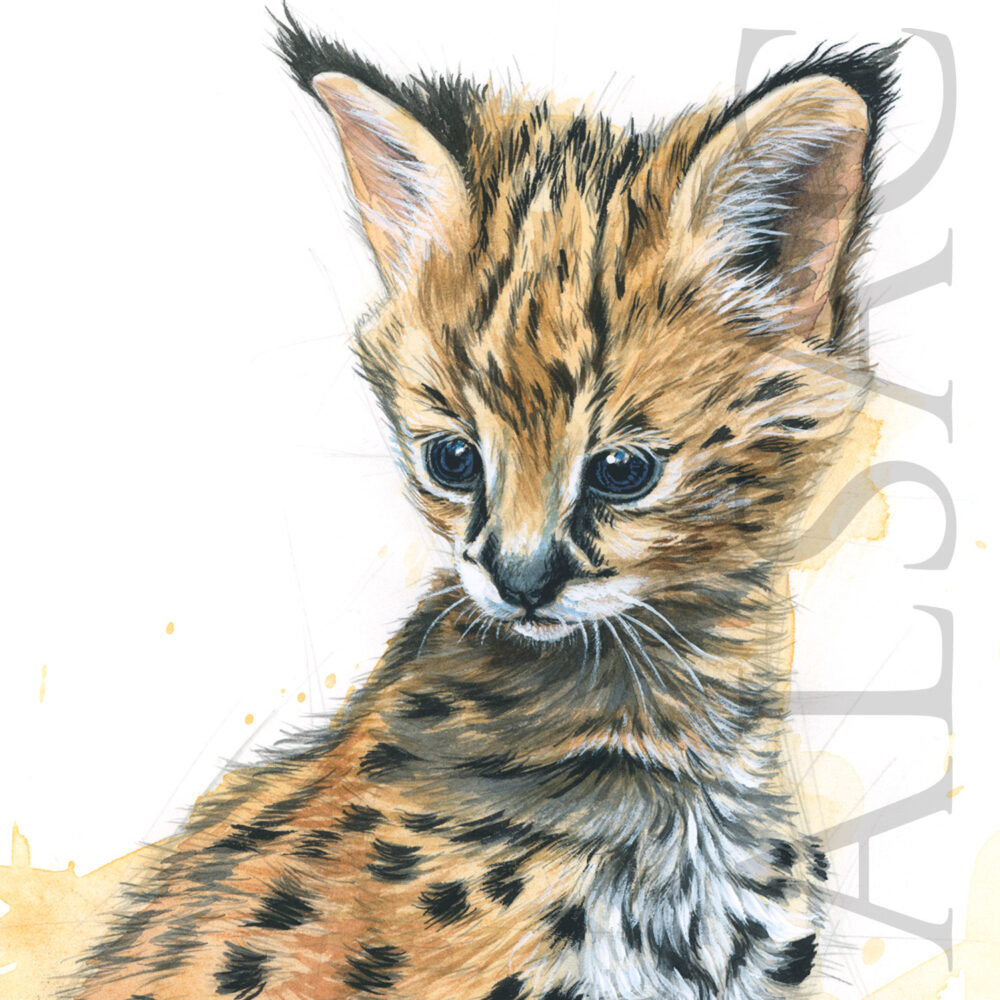 dessin-aquarelle-bebe-serval-felin-mignon-deco-enfant