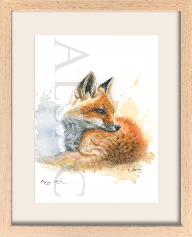 cadre-aquarelle-dessin-renard-chasseur-enfant-campagne