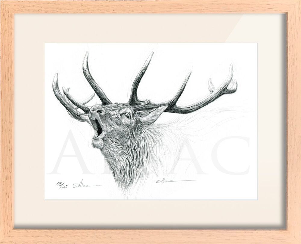 "Bellowing of the stag" - framed light oak