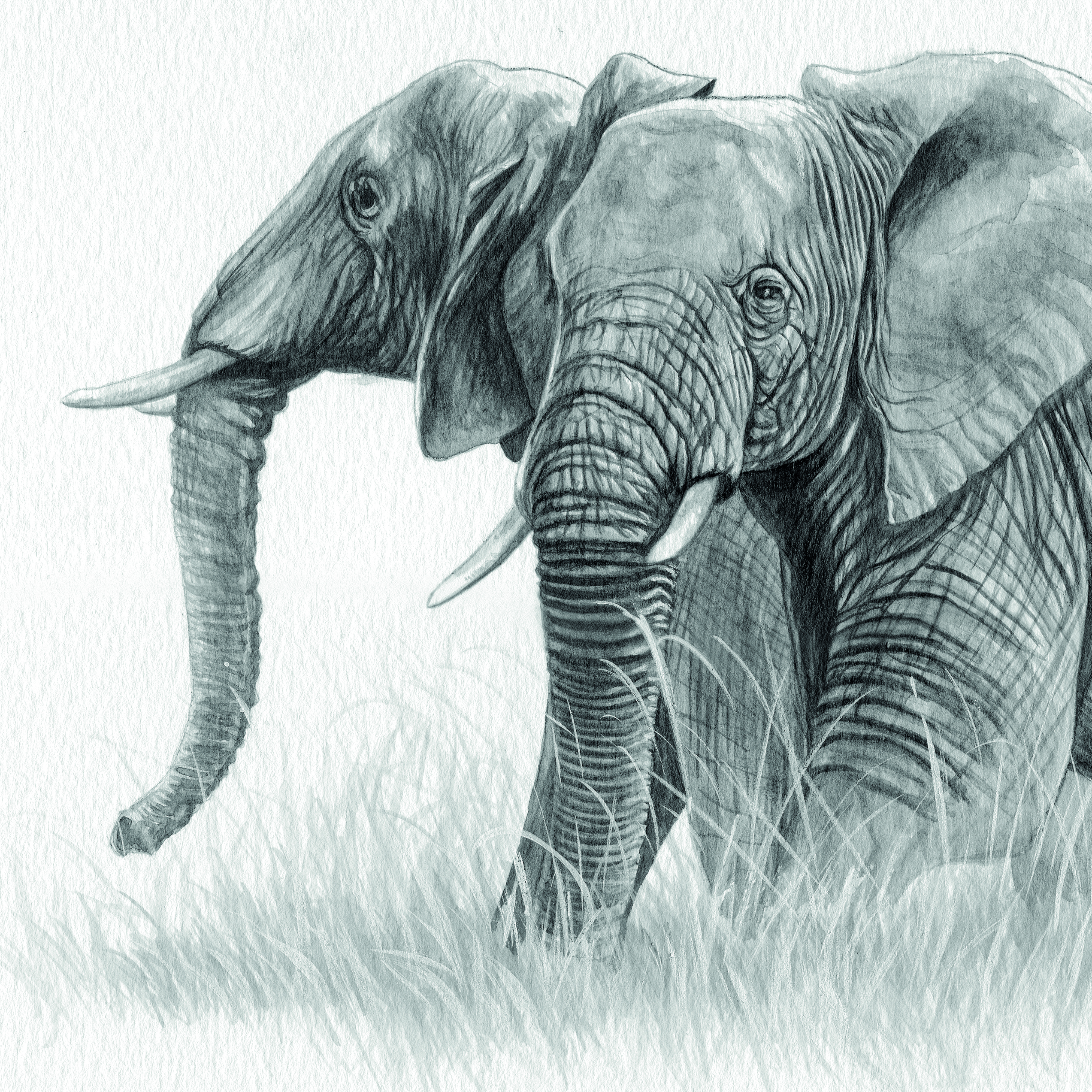 "Deux Eléphants" - Pastel
