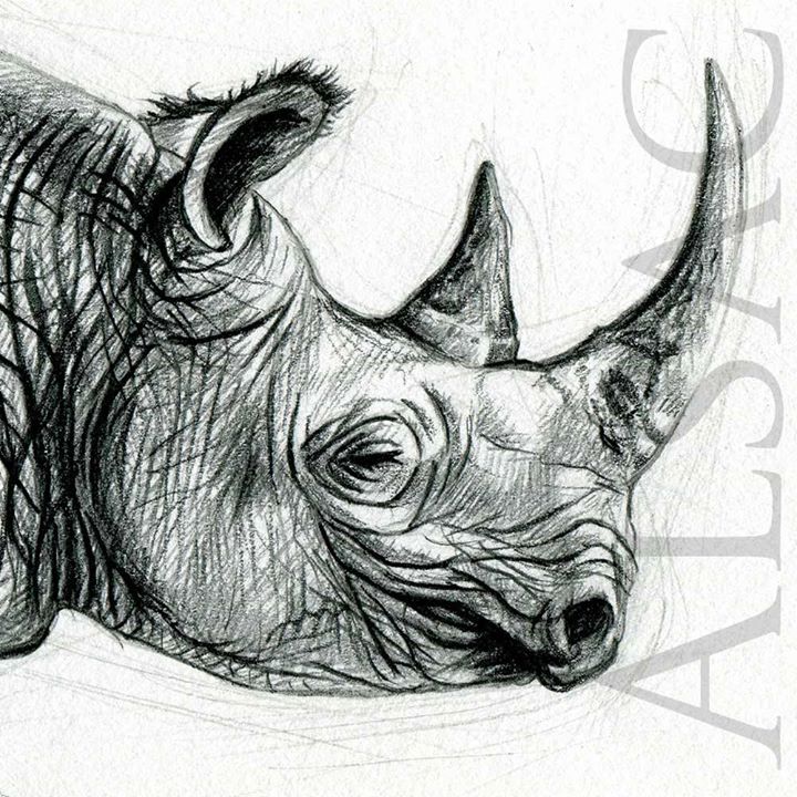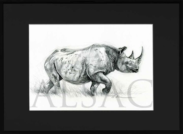 « Rhino Noir » – Dessin à la mine de plomb sur papier – « Sauvons les Rhino contre le Braconnage !! »