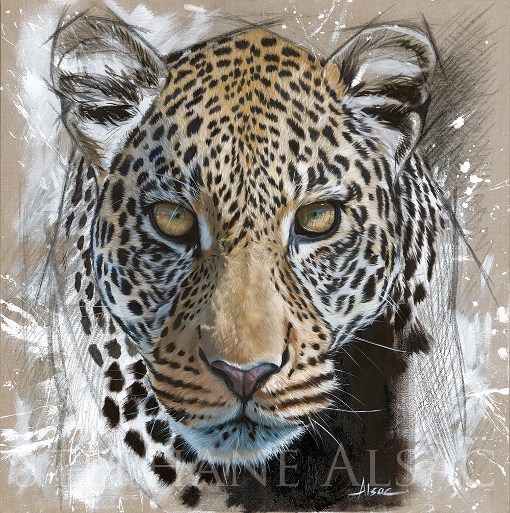 « Léopard » -huile sur toile – 1m x 1m de la collection Eye to Eye sera exposé à l