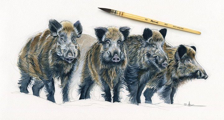 Retour sur une aquarelle de sangliers réalisée pour la collection de couteaux « 1515 » de l’atelier Manu Laplace. Une aquarelle originale encore disponible ici :https://buff.ly/2DooQTe