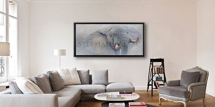 Flashback on one of my big paintings « High & Mighty’ – Portrait of an intimidating African Elephant. It is an oil painting 150cm x 70 cm , still available / https://buff.ly/2mhJCw8; price on demand