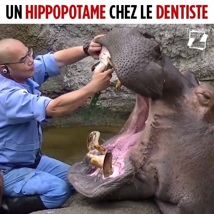 Teasing ?[fb_vid id= »1351264884920277″]Un hippopotame chez le dentiste.