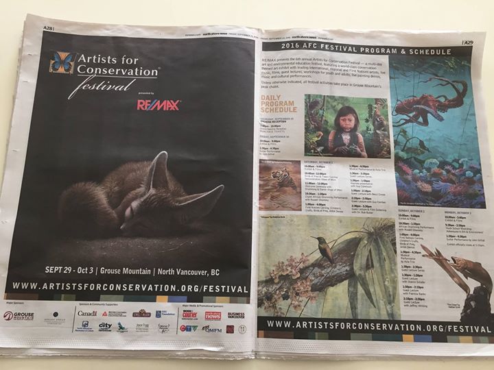 Welcome to the 6th annual #AFCFestival happening in Vancouver, BC. Artists and guests gather to celebrate nature and art Sept 29 – Oct 3rd. Thank you to our presenting sponsor RE/MAX of Western Canada and all our supporters. AFC Exhibit will go on tour to Arizona-Sonora Desert Museum this Dec. For information, visit www.artistsforconservation.org