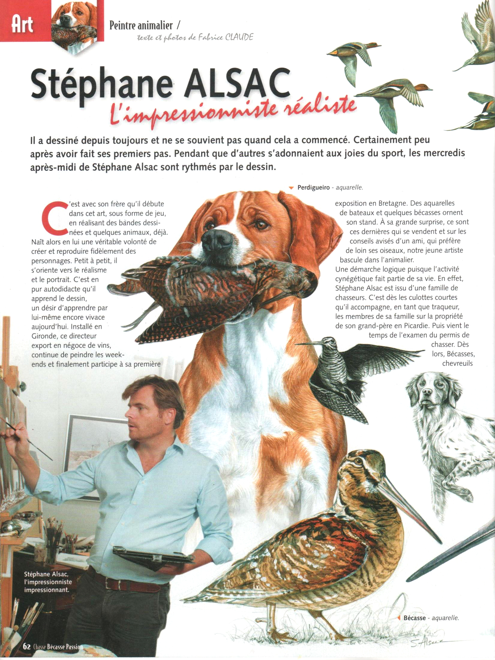 Le magazine « Becasse Passion » , dans son numero 106 d’août 2018, consacre sa rubrique « Arts » à Stéphane Alsac. Un grand merci à Fabrice Claude pour son très bel article.
