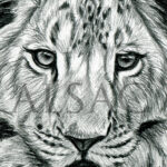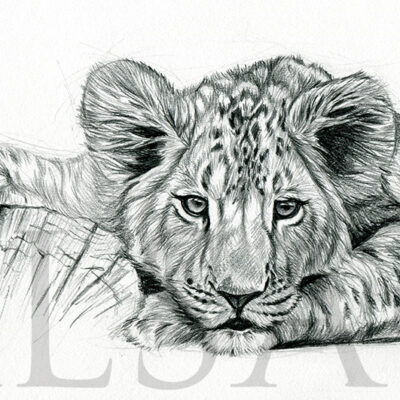 « Lionceau paresseux » est un dessin réalisé à la mine de plomb représentant un lionceau appuyé sur une branche. Un dessin animalier contemporain signé par l’Artiste et encadrée et une idée de cadeau pour un amoureux des félins.