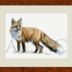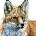 Aquarelle représentant un renard roux d’Europe. Peinture animalière contemporaine signée par l’Artiste.