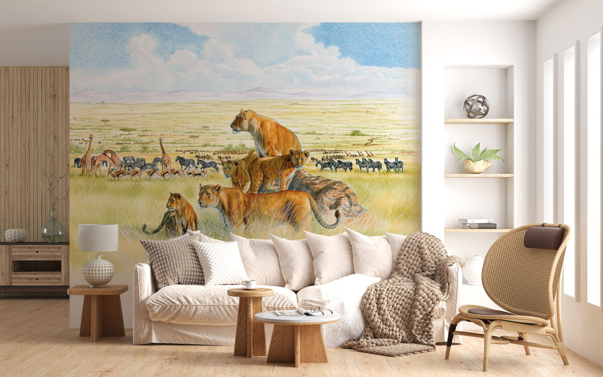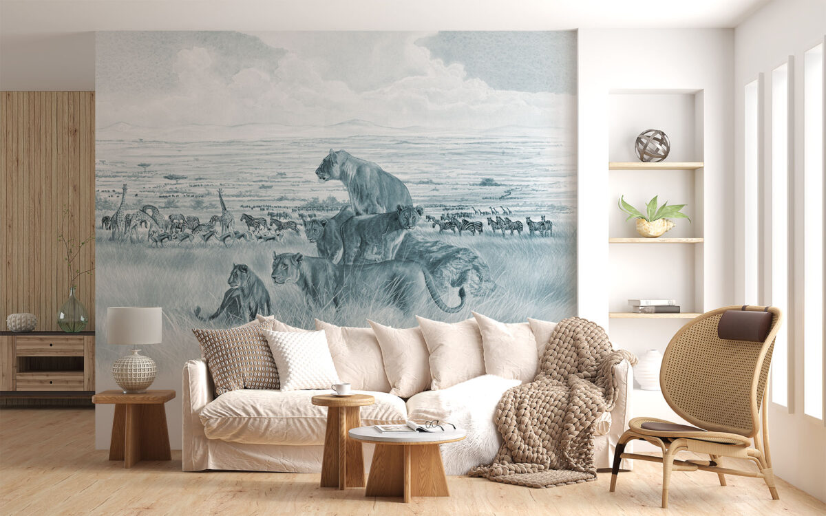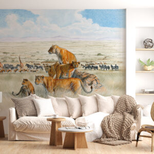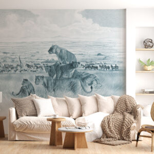 - Décor composé de plusieurs lés de 1 mètre de large.