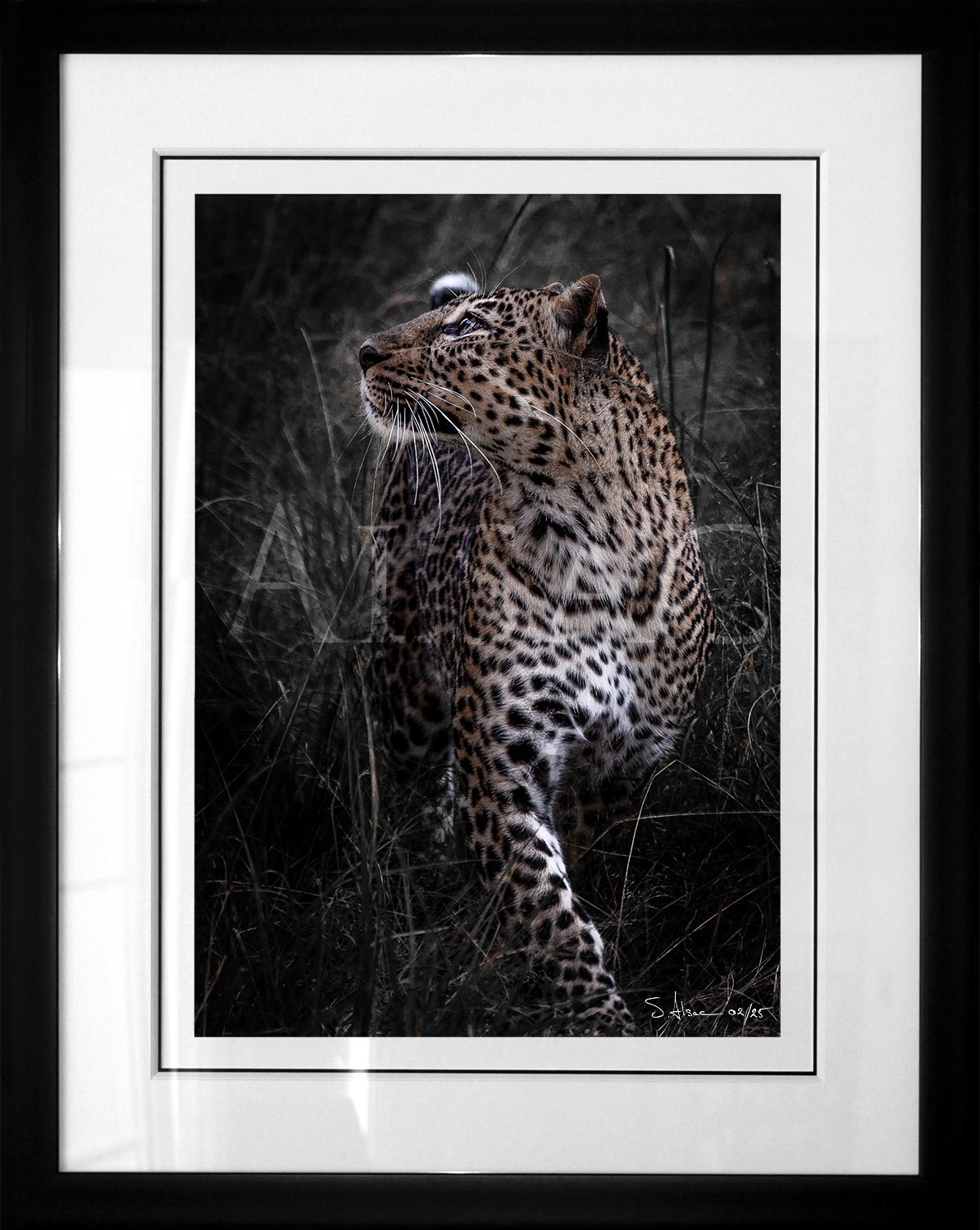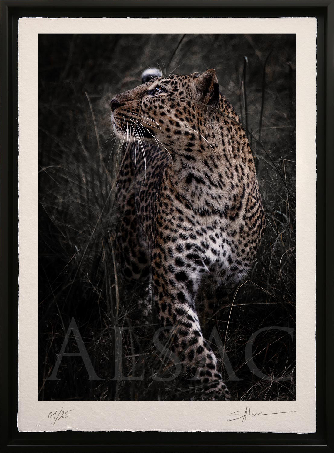 « Wild Beauty » est une série de Photographies d’Art Noir et Blanc de l’Artiste Animalier Stéphane Alsac, connu pour ses tableaux d’animaux d’un réalisme saisissant. L’intention artistique de cette collection de photos monochromes est de créer un dialogue entre l’animal sauvage africain et le spectateur. La photo noir et blanc fait ressortir les formes et les textures des animaux d’Afrique et souligne ainsi la force brute de l’animal et sa beauté sauvage. Stéphane Alsac vous invite à plonger vos yeux dans ceux du Lion, de toucher la texture de la trompe de l’Eléphant, de sentir le feulement du léopard à travers ces photos artistiques noir et blanc et sépias. L’ambiance de la savane africaine vous emporte dans un safari photo magique. Les tirages photographiques originaux sont limités à 25 exemplaires. La photo est signée par le photographe animalier et numérotée. Choisissez la taille et l’aspect de votre photo :