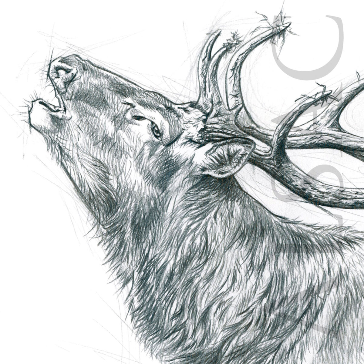 Dessin animalier « Cerf au Brame – 2ème croquis » – Cervus elaphus