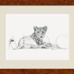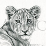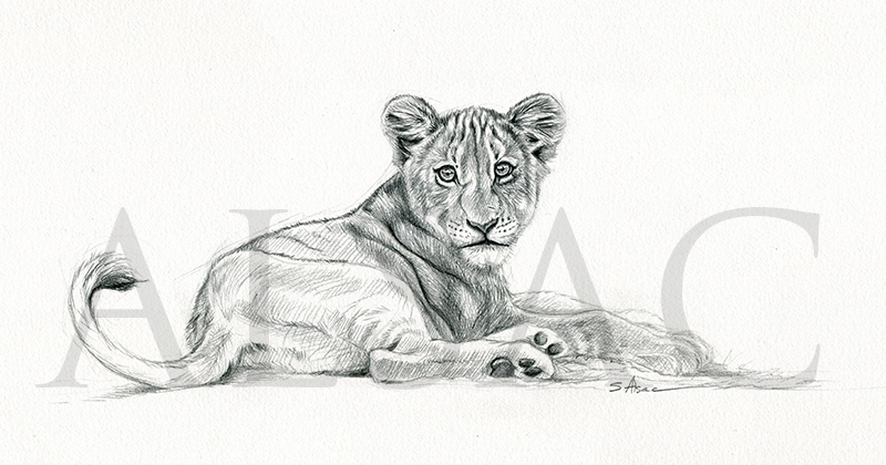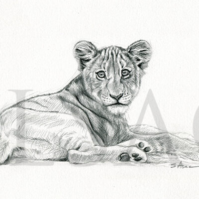 « Lion Cub » est un dessin original de Stéphane Alsac, Artiste peintre animalier, représentant un lionceau allongé. Retrouvez toutes les autres tableaux animaliers sur le thème des animaux d’Afrique.