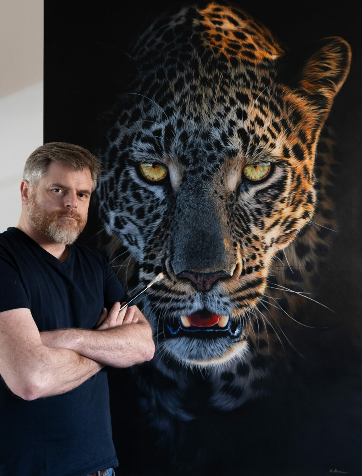 « Invictus » – Peinture à l’huile – portrait d’un Léopard.