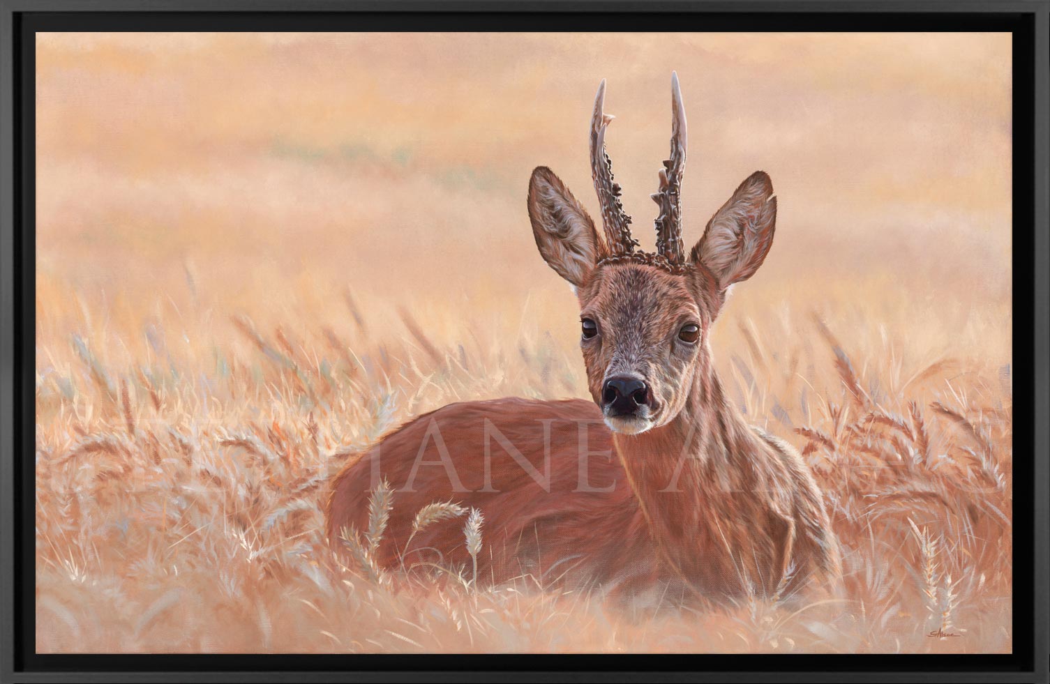 - Encadré en Caisse Américaine : Toile tendue dans une caisse américaine noire mate, livrée prête à accrocher.