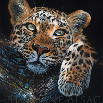 « Shwari », qui signifie « calme » en swahili, incarne la sérénité et la majesté du léopard dans son habitat naturel. À travers cette œuvre hyperréaliste, mon objectif était de capturer non seulement la beauté saisissante de cet animal emblématique, mais aussi l’instant suspendu où il semble nous observer, empreint de curiosité et de sagesse.