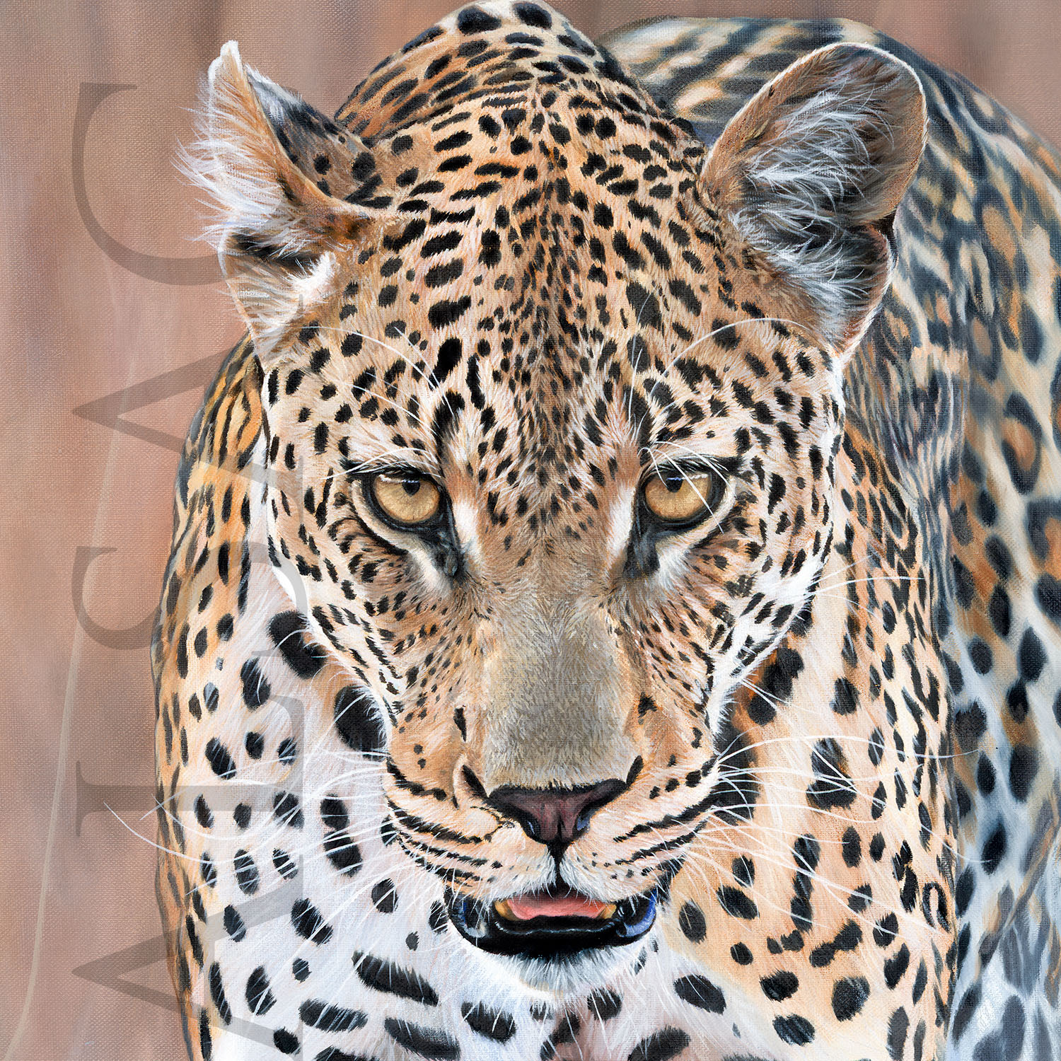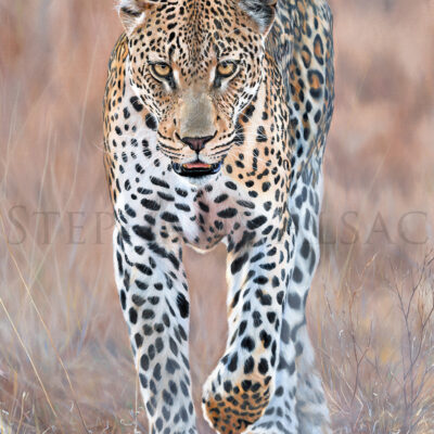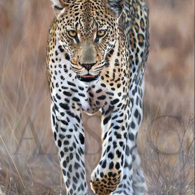 « Le Chasseur » est un tableau représentant un Léopard en action de chasse. Il s’agit d’une peinture à l’huile réalisée sur toile de 1,20 mètre de haut sur 88 cm de large. Ce tableau a été commandé par un collectionneur privé.