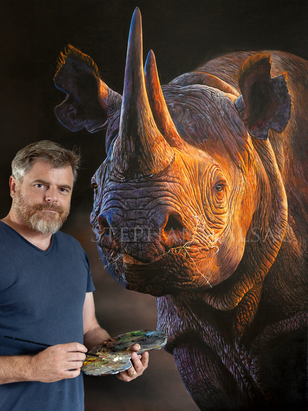 « Damanius » – Peinture à l’huile – portrait d’un Rhinoceros noir