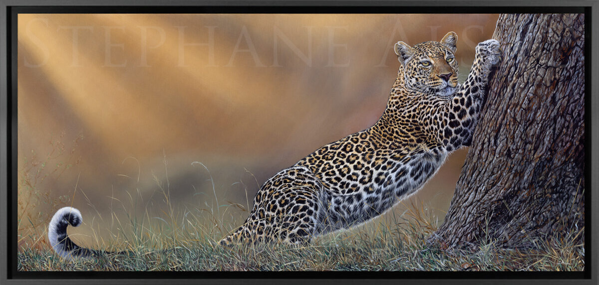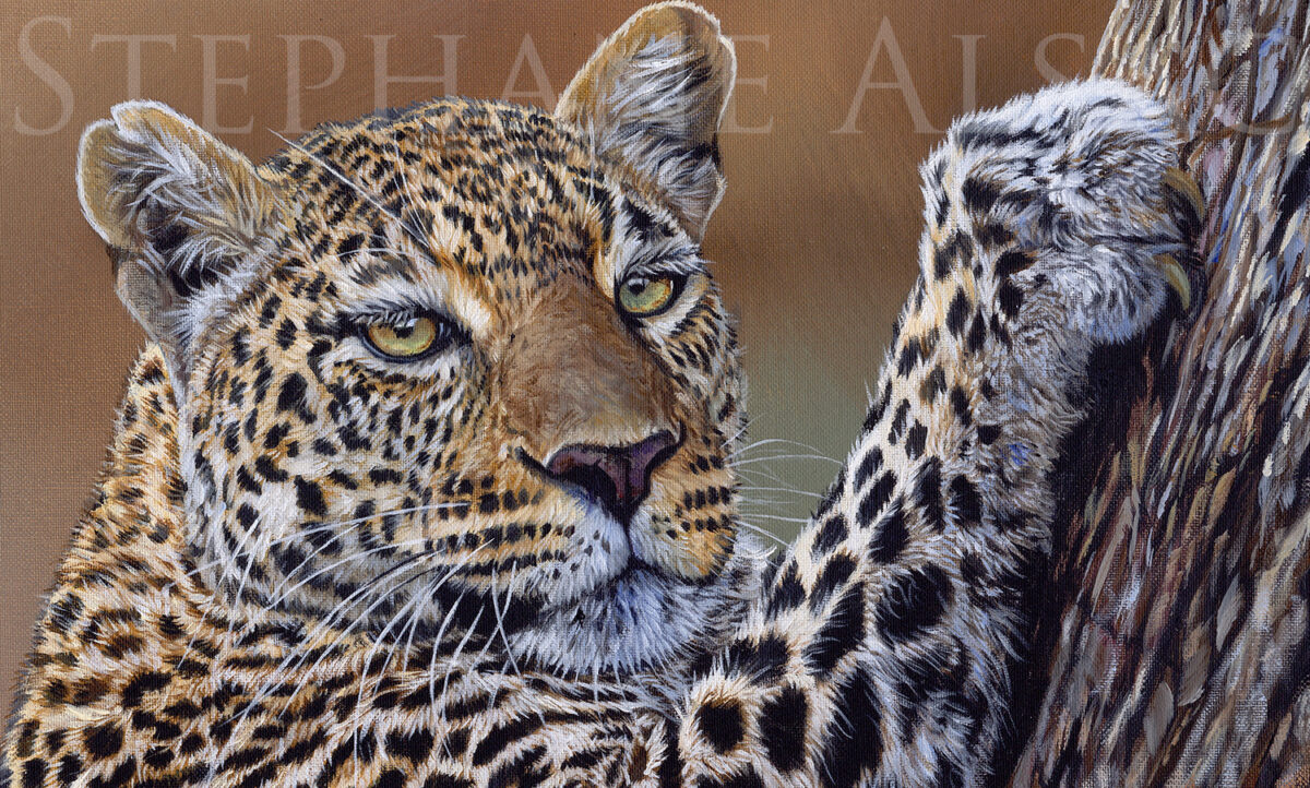L’Artiste Animalier Stéphane Alsac présente ici son dernier tableau : Le portrait de le célèbre femelle léopard du Masai-Mara : Romi.