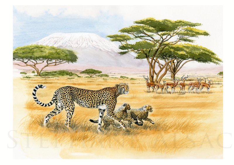 tableau-peinture-guepards-famille-tanzanie-kenya