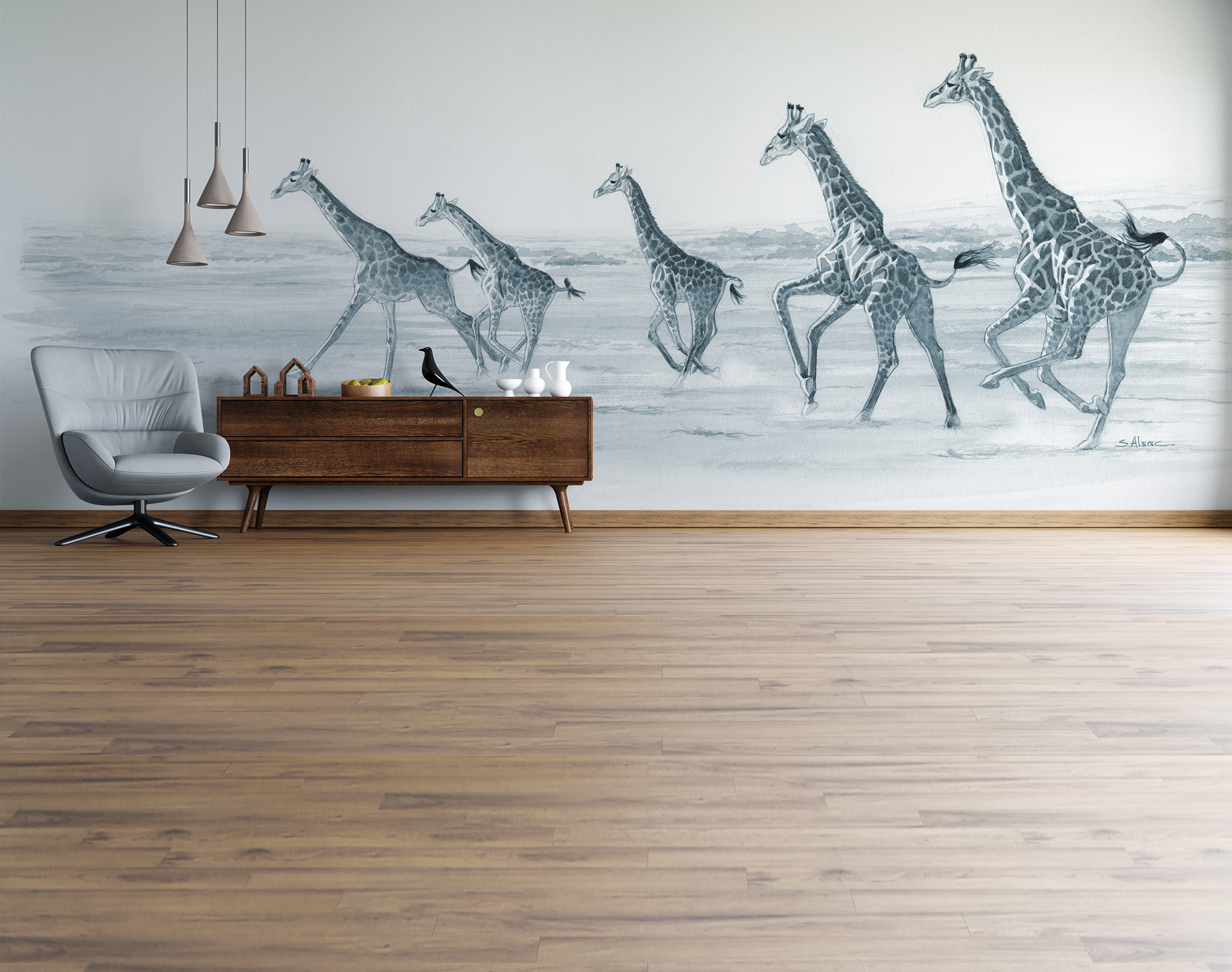 papier-peint-panoramique-girafes-savane-safari-afrique-bleu