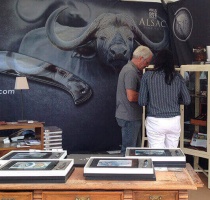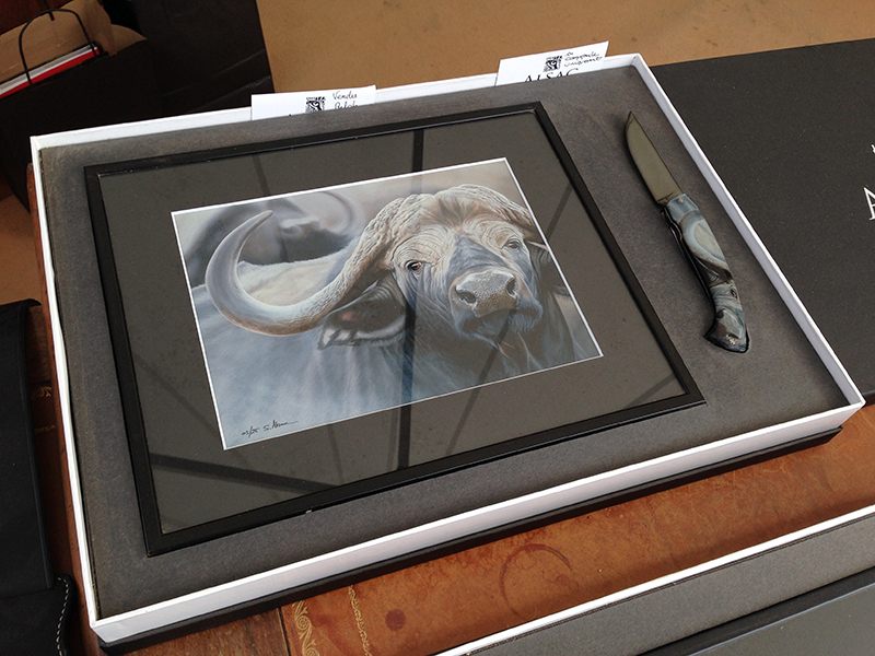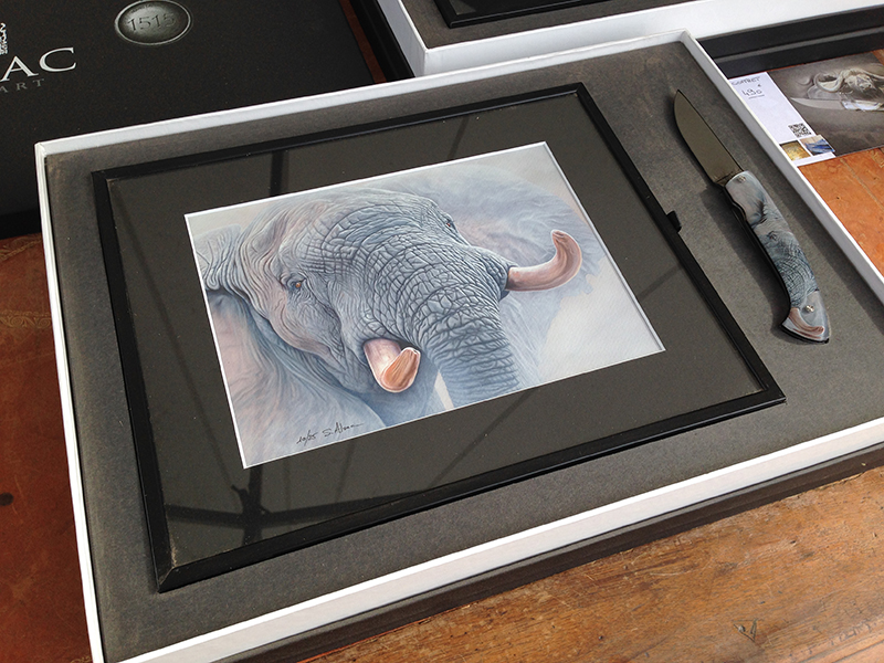 A cette occasion, Les deux artistes ont décidé de lancer une “Edition Collector” : Un élégant coffret noir comprenant une lithographie numérotée et signée par Stephane Alsac d’une peinture reprise sur les manches des couteaux et un couteau, lui aussi numéroté et signé par Manu Laplace.