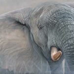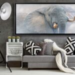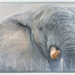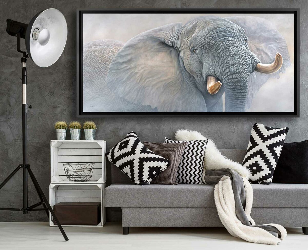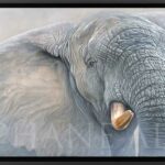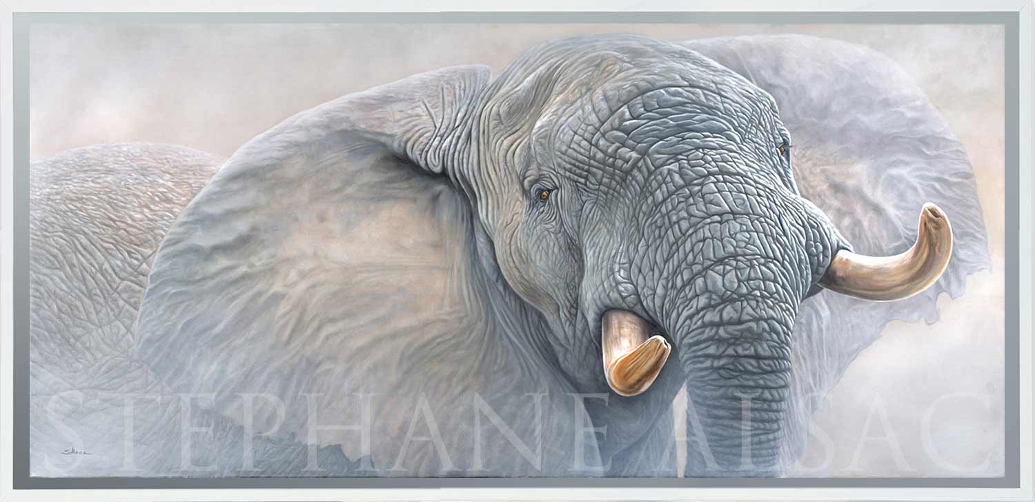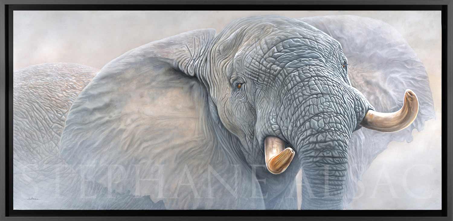 - – The matte black floater frame with golden borders enhances the color of the tusks. The framing is made by hand by a french artisan.