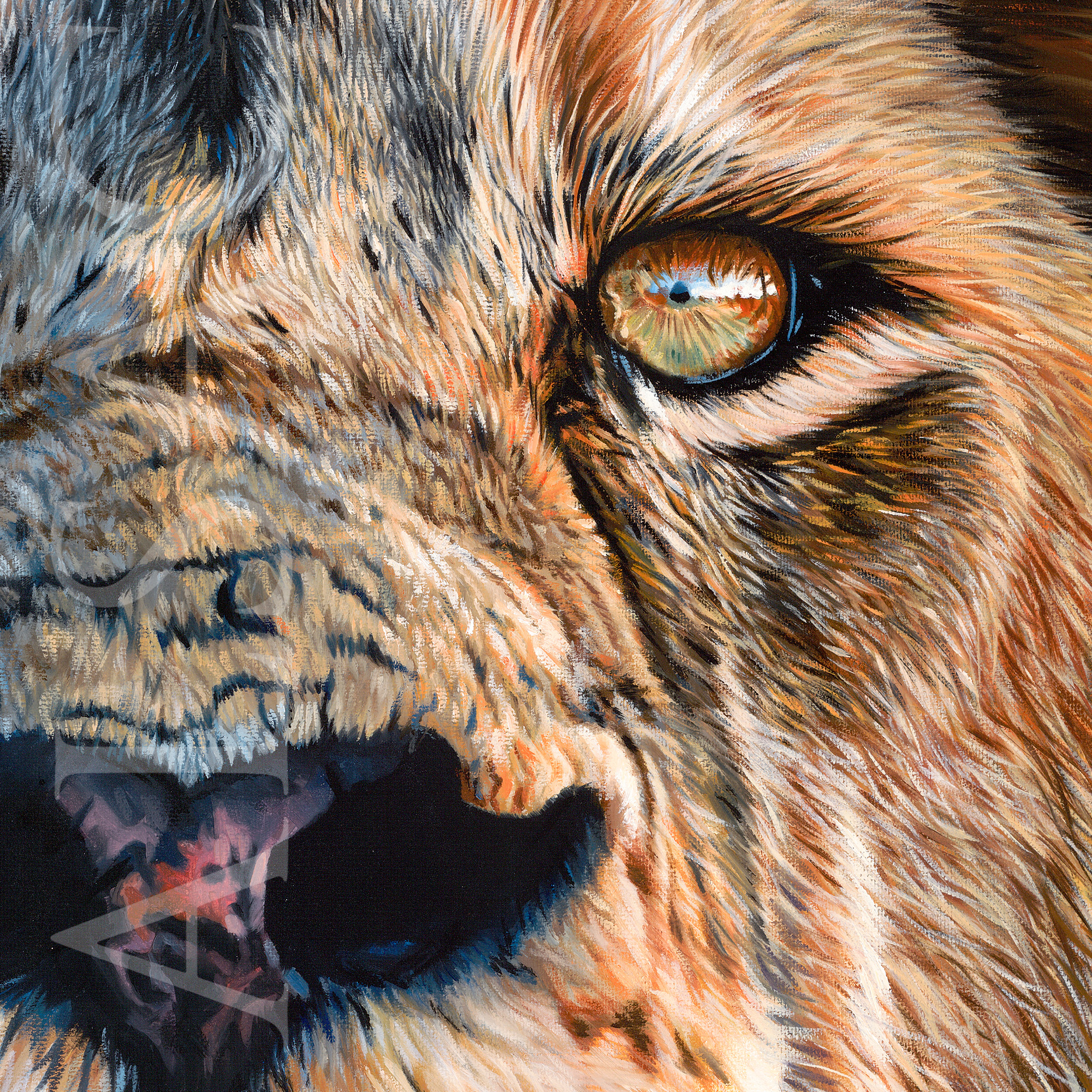 Finally, I detail more precisely the eyes, the muzzle and the mouth. The rest of the head loses focus in order to capture the viewer’s gaze more.