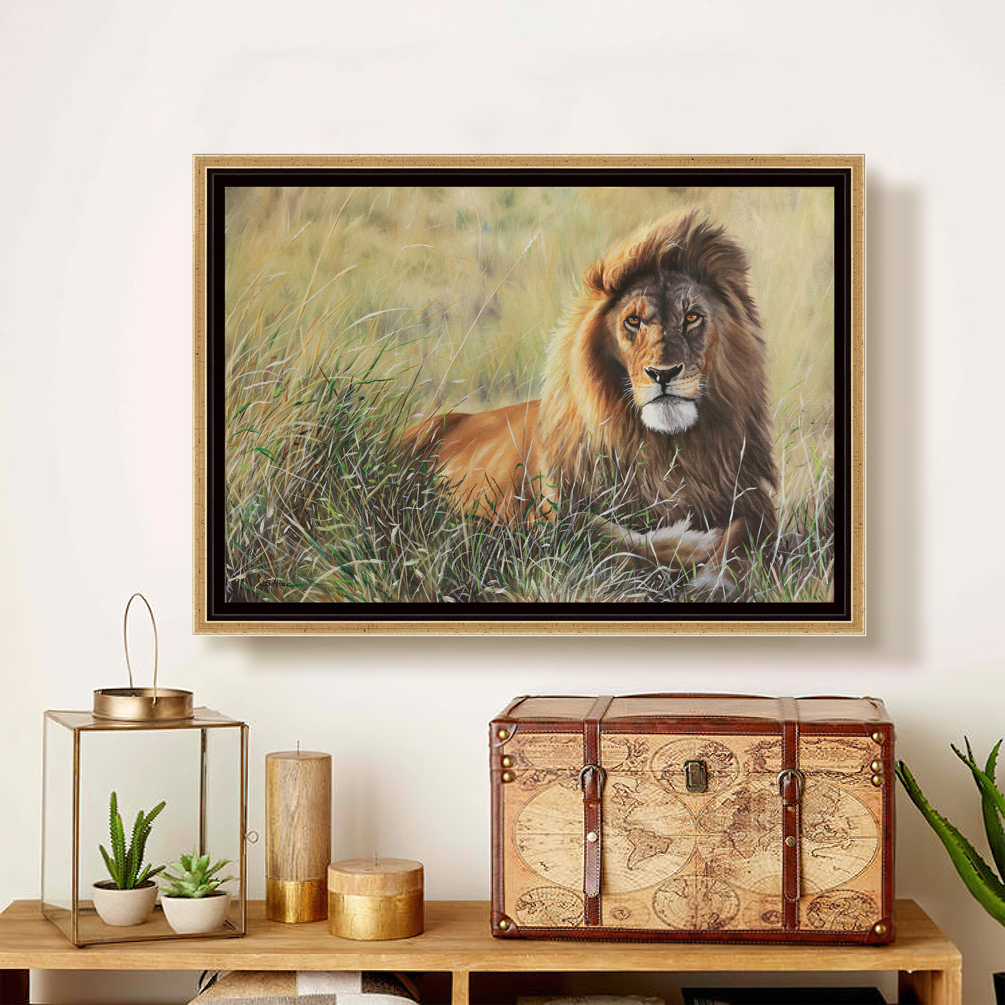 - – Framed in a floater frame : The canvas is stretched and framed in a beautiful matte black floater frame. The painting is delivered in a wooden case by carrier and ready to hang.