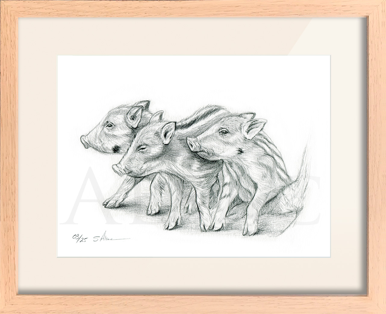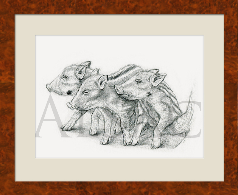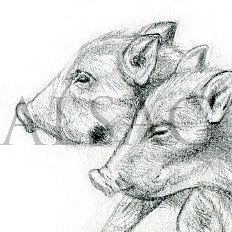 “The 3 little pigs” is a drawing by Stéphan Alsac, animal painter, representing three little pigs.