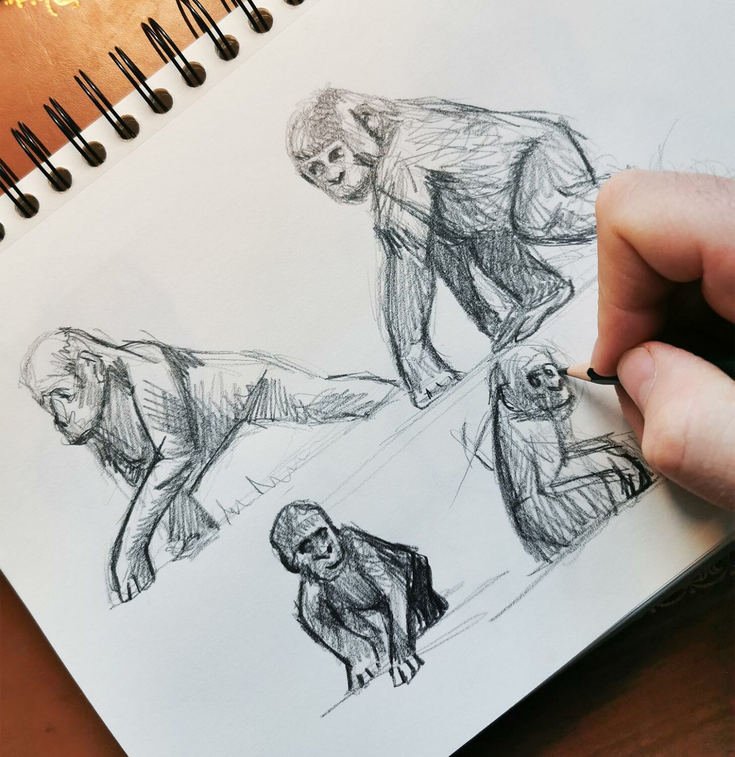 Original illustration in watercolor by Stephan Alsac, contemporary animal artist: A baby gorilla made with charcoal and enhanced with watercolor.