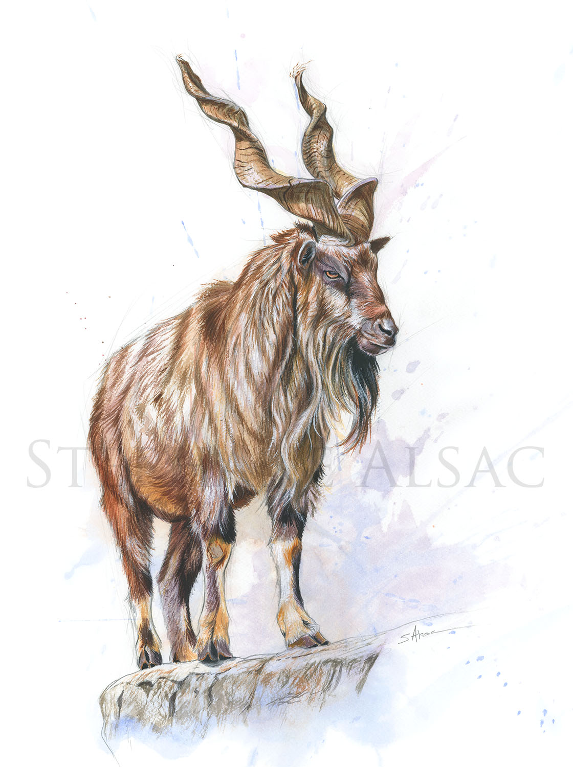 WATERCOLOR ILLUSTRATION: “MARKHOR” – CAPRA FALCONERI