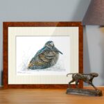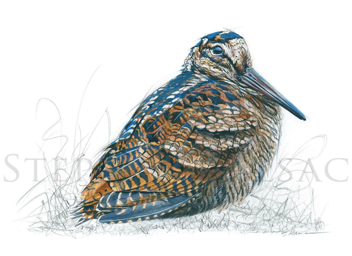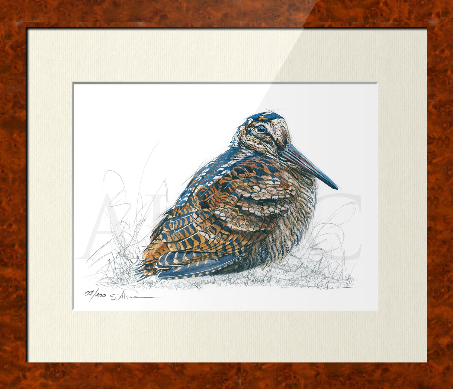 Digital lithograph on paper of the original watercolor painting by Stephan Alsac, contemporary animal artist: the painting of a woodcock.