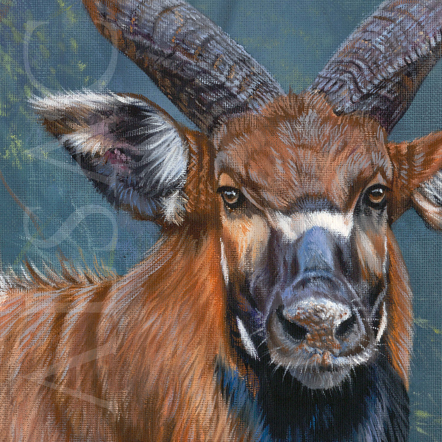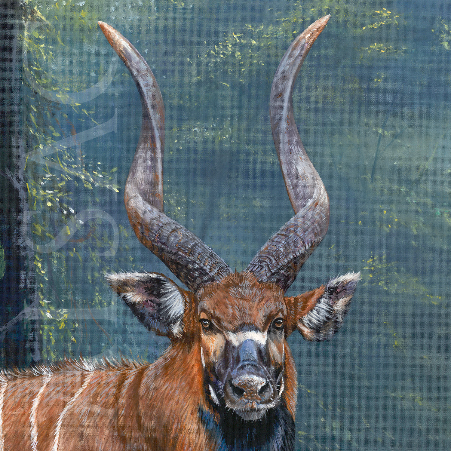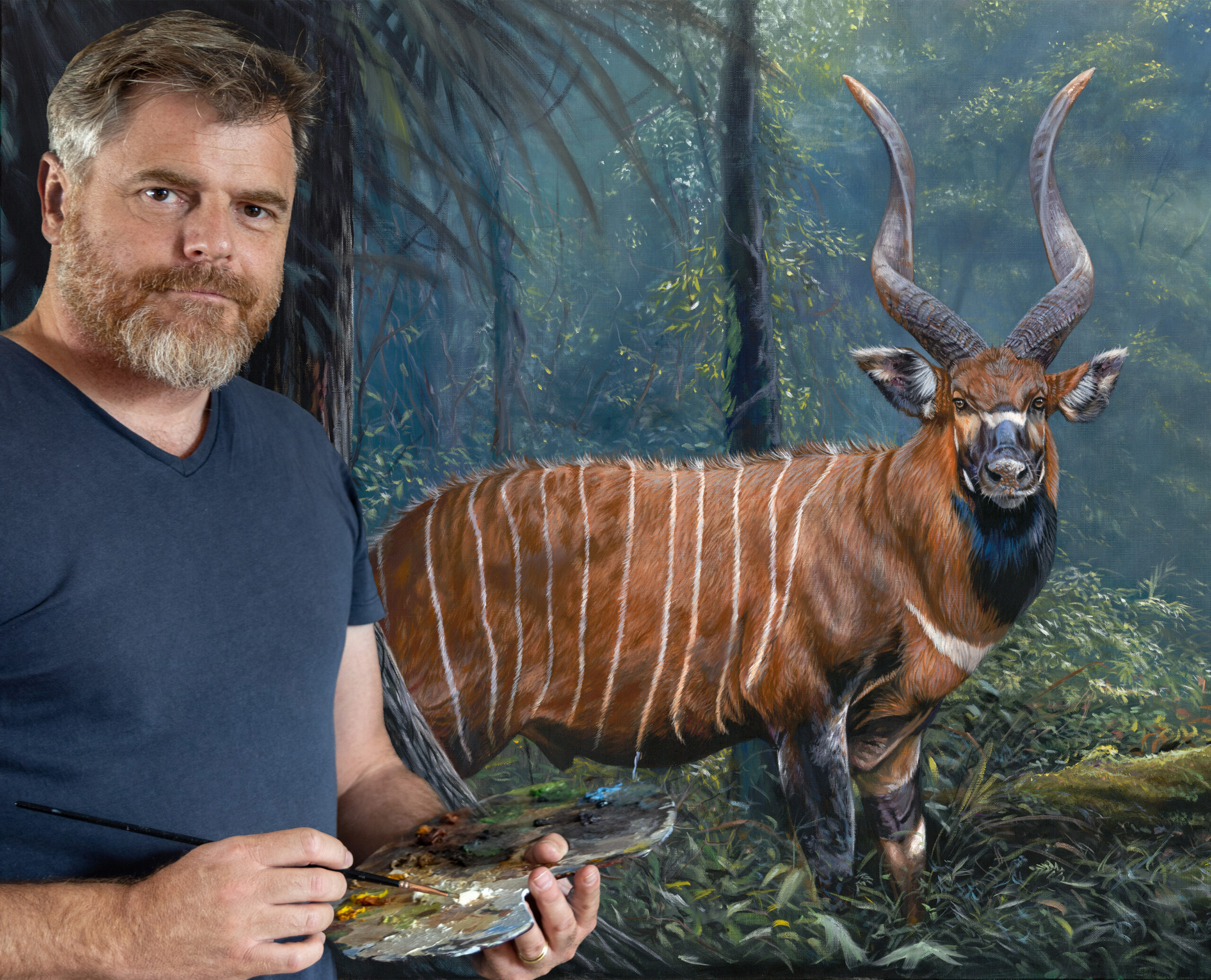 In the end, what I wanted to convey in this painting was this incredible experience. The painting’s main subject is not so much the Bongo as the forest that draws you into its maze of elephant tracks. The composition directs the viewer’s eye, the mystery takes you away, you’re in the painting, and the only escape is this source of light.
