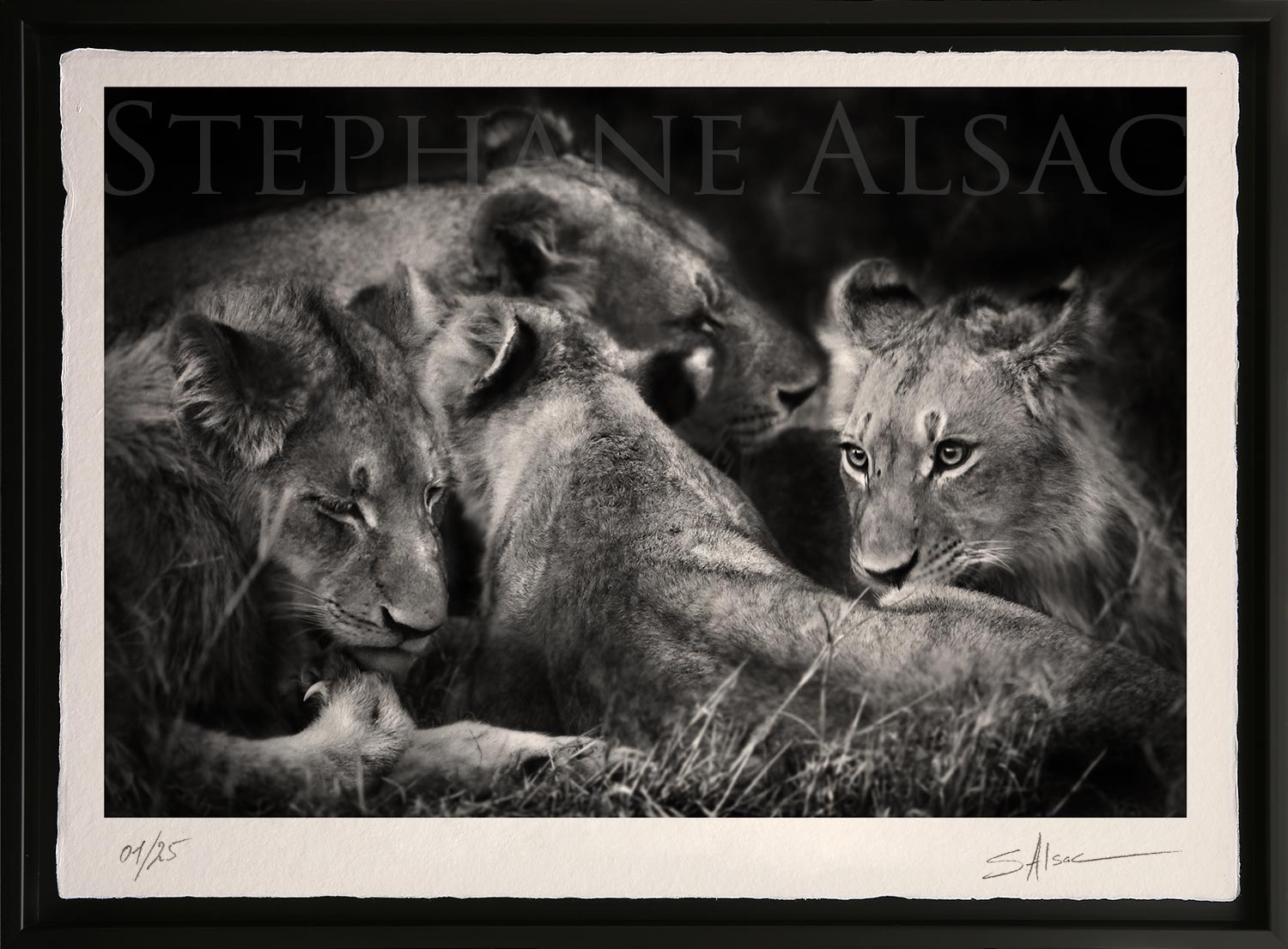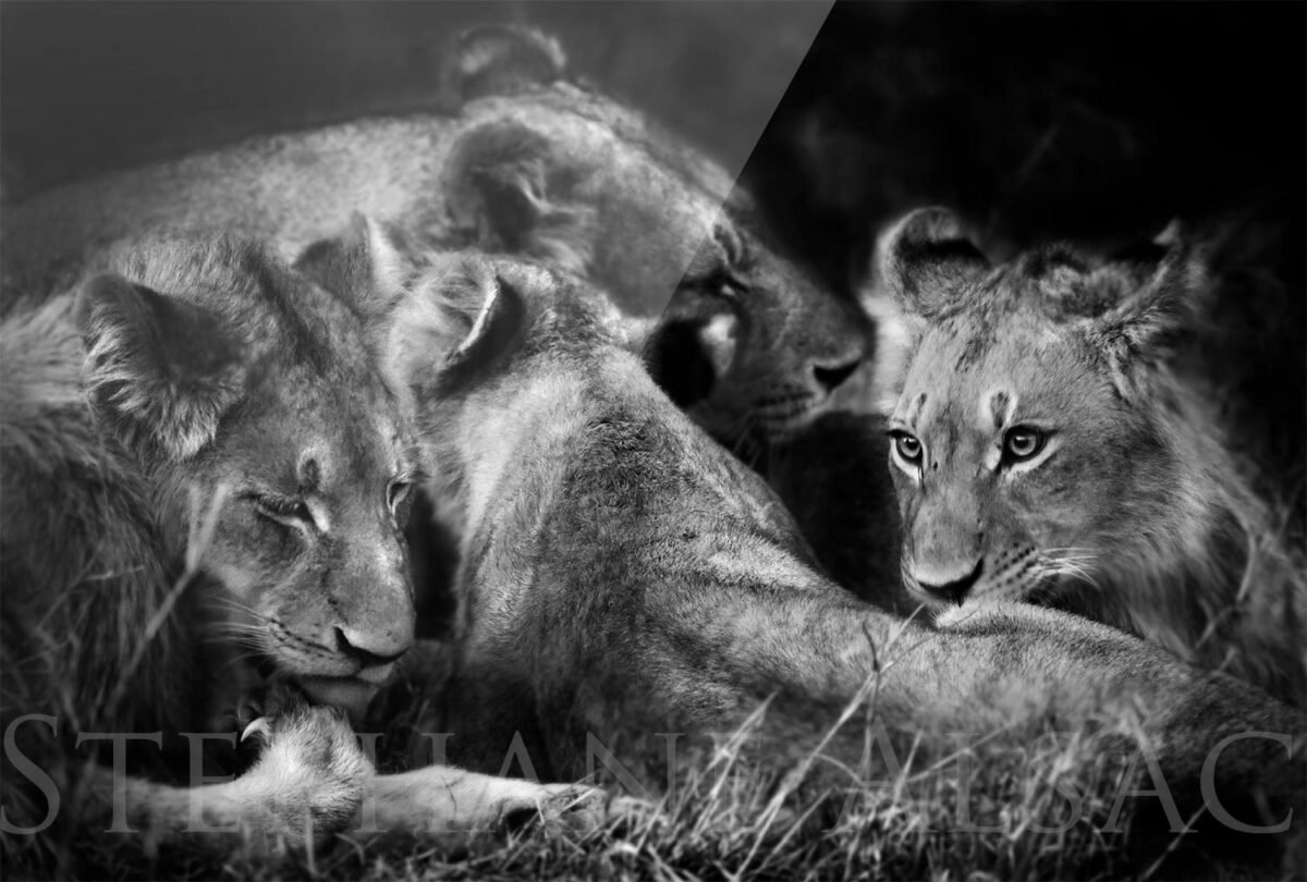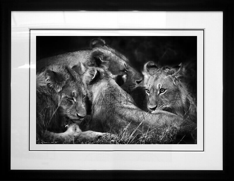 “Wild Beauty” is a series of Black and White Art Photographs by Animal Artist Stéphane Alsac, known for his strikingly realistic paintings of animals. The artistic intention of this collection of monochrome photos is to create a dialogue between the African wild animal and the viewer. The black and white photo brings out the shapes and textures of African animals and thus emphasizes the raw strength of the animal and its wild beauty. Stéphane Alsac invites you to plunge your eyes into those of the Lion, to touch the texture of the Elephant’s trunk, to feel the leopard hiss through these artistic black and white and sepia photos. The atmosphere of the African savannah takes you on a magical photo safari. Original photographic prints are limited to 25 copies. The photo is signed by the wildlife photographer and numbered. Choose the size and look of your photo: