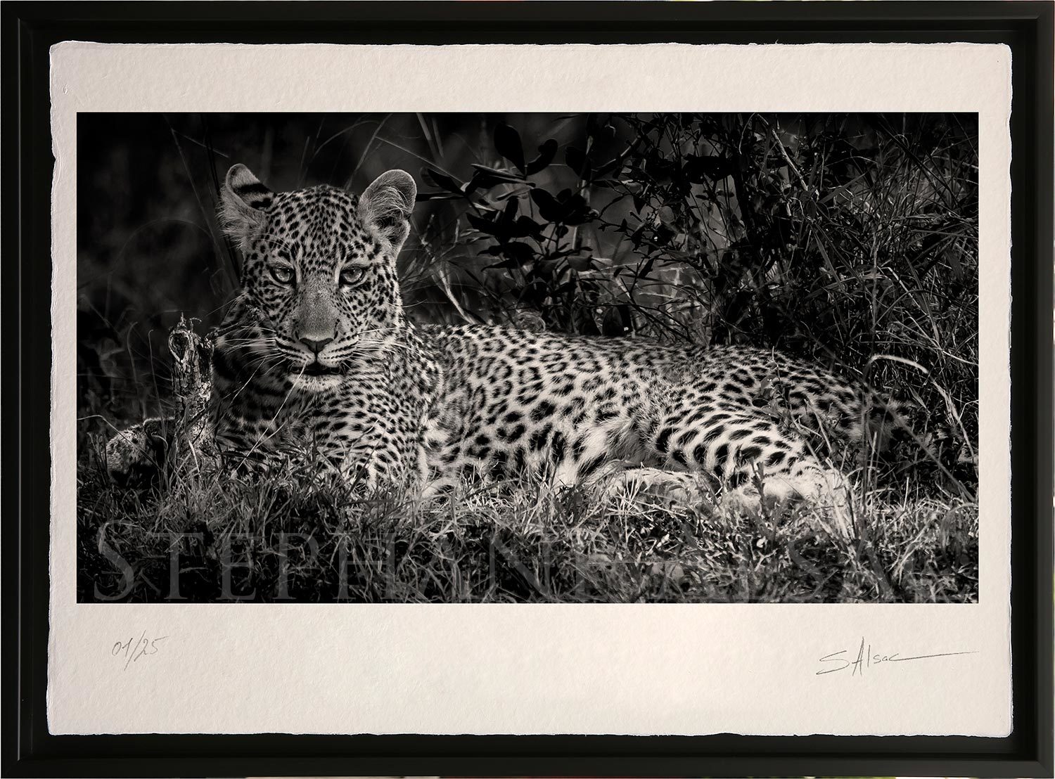 “Wild Beauty” is a series of Black and White Art Photographs by Animal Artist Stéphane Alsac, known for his strikingly realistic paintings of animals. The artistic intention of this collection of monochrome photos is to create a dialogue between the African wild animal and the viewer. The black and white photo brings out the shapes and textures of African animals and thus emphasizes the raw strength of the animal and its wild beauty. Stéphane Alsac invites you to plunge your eyes into those of the Lion, to touch the texture of the Elephant’s trunk, to feel the leopard hiss through these artistic black and white and sepia photos. The atmosphere of the African savannah takes you on a magical photo safari. Original photographic prints are limited to 25 copies. The photo is signed by the wildlife photographer and numbered. Choose the size and look of your photo: