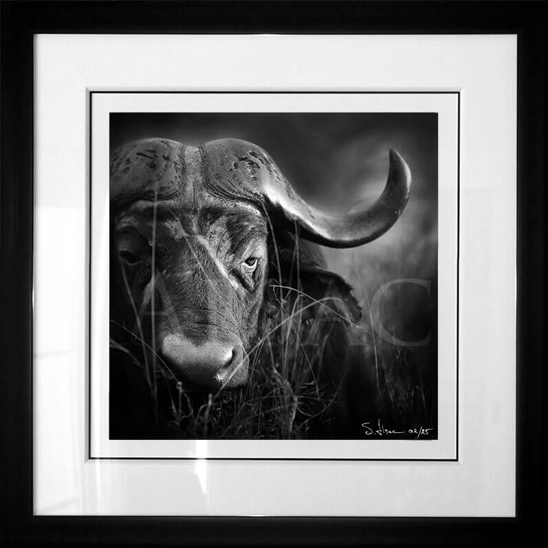 “Wild Beauty” is a series of Black and White Art Photographs by Animal Artist Stéphane Alsac, known for his strikingly realistic paintings of animals. The artistic intention of this collection of monochrome photos is to create a dialogue between the African wild animal and the viewer. The black and white photo brings out the shapes and textures of African animals and thus emphasizes the raw strength of the animal and its wild beauty. Stéphane Alsac invites you to plunge your eyes into those of the Lion, to touch the texture of the Elephant’s trunk, to feel the leopard hiss through these artistic black and white and sepia photos. The atmosphere of the African savannah takes you on a magical photo safari. Original photographic prints are limited to 25 copies. The photo is signed by the wildlife photographer and numbered. Choose the size and look of your photo: