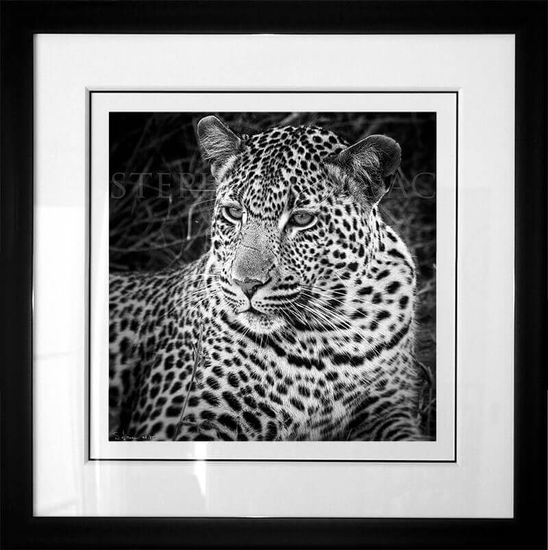 “Wild Beauty” is a series of Black and White Art Photographs by Animal Artist Stéphane Alsac, known for his strikingly realistic paintings of animals. The artistic intention of this collection of monochrome photos is to create a dialogue between the African wild animal and the viewer. The black and white photo brings out the shapes and textures of African animals and thus emphasizes the raw strength of the animal and its wild beauty. Stéphane Alsac invites you to plunge your eyes into those of the Lion, to touch the texture of the Elephant’s trunk, to feel the leopard hiss through these artistic black and white and sepia photos. The atmosphere of the African savannah takes you on a magical photo safari. Original photographic prints are limited to 25 copies. The photo is signed by the wildlife photographer and numbered. Choose the size and look of your photo: