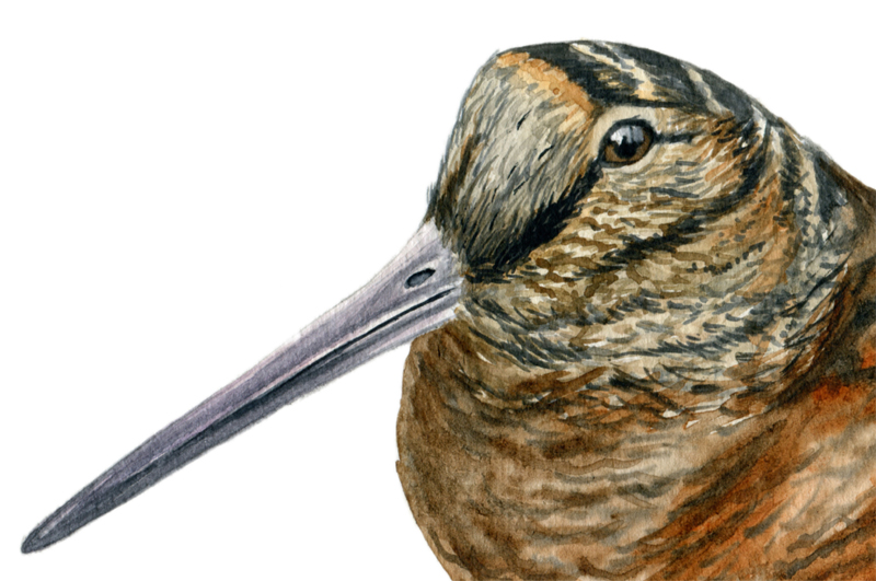 Je vous présente ma petite dernière, une aquarelle de bécasse, format 18 x 26 cm :
