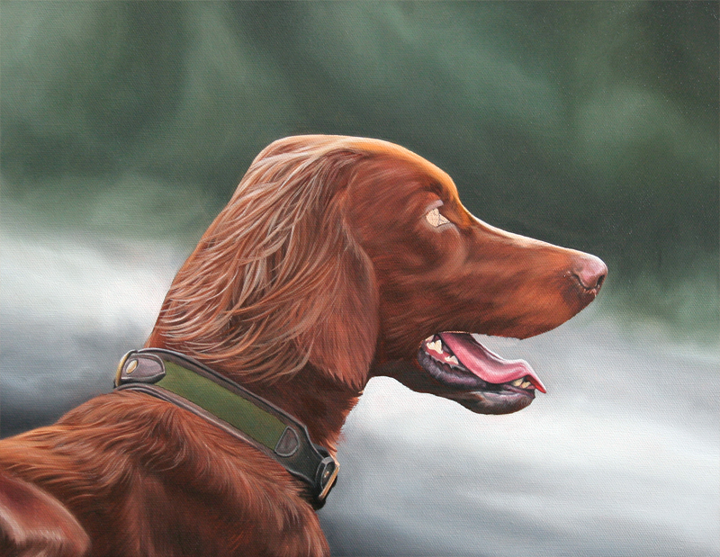 Cette fois-ci, je vous propose de suivre les étapes de création d'un portrait à l'huile d'un très beau setter irlandais.